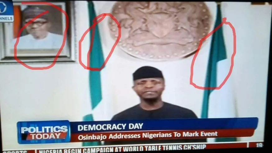 But these Armed Forces' flags were missing while Vice/Acting President Osinbajo delivered May 29, 2017 democracy day speech. Could this mean that the Acting President is not the Commander in Chief?
