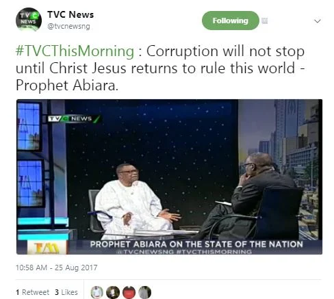 Prophet Abiara stated this when he featured on Television Continental, TCV This Morning on Friday.