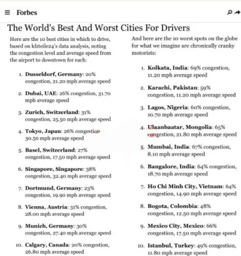 ![Forbes Ranking: Lagos Is 3rd Worst City For Drivers in The World [See LIST]](https://www.nigerianbulletin.com/data/attachments/102/102946-644dc72849106a71d59afefdd640602f.jpg)