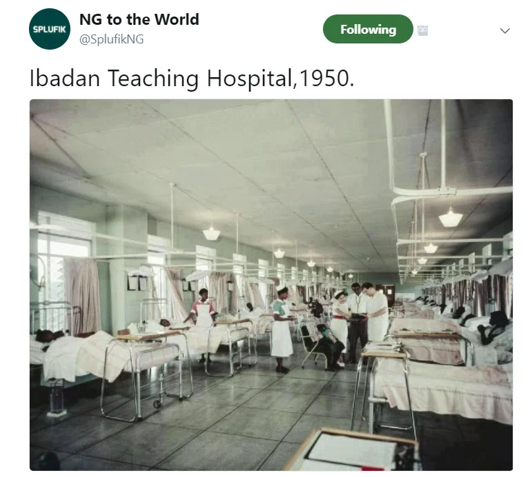 This picture of Ibadan teaching hospital in 1950 was posted by NG to the World (@SplufikNG) on Twitter. It brings tears to the e...