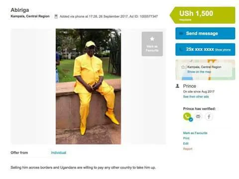 Honorable Ibrahim Abiriga has been put up for sale on on popular site
