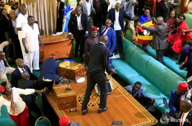 PHOTOS: Ugandan Lawmakers Fight In Parliament Over Presidential Age Limit