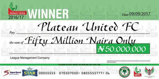 Plateau United Gets Fifty Million Naira For Winning The NPFL