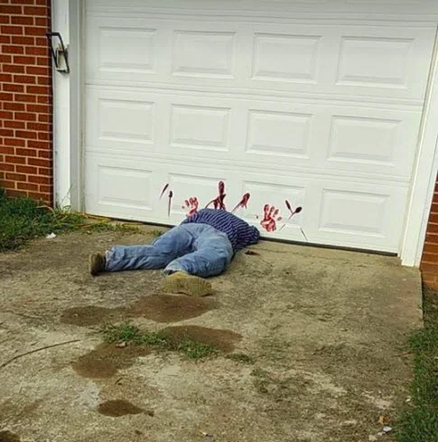 ATTENTION EVERYONE!!! For those of you driving on Chuckey Pike in Greene County: THIS IS A HALLOWEEN DECORATION! Do NOT call 911 reporting a dead body. Instead, congratulate the homeowner on a great display.