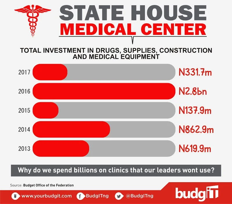Here is a picture analyses of the State house medical center budget from 2013 to 2017 as released by BudgIT. This is coming as the w...