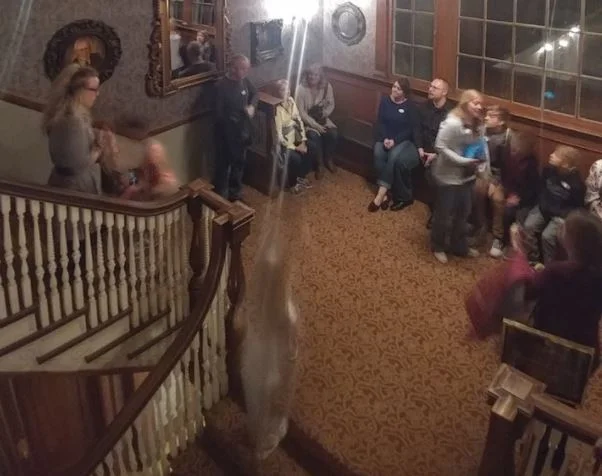 After returning home, they noticed a photo taken by John “Jay” Mausling that seemed to show a young girl walking down the stairs.
