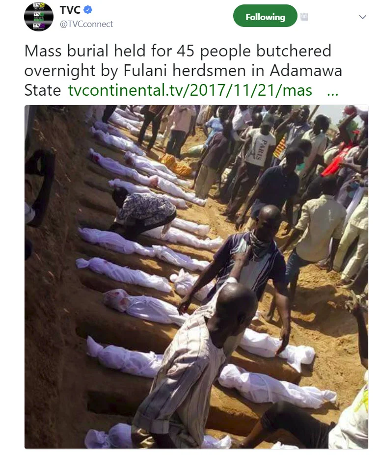 Home » photos » PHOTO: Mass Burial Of 45 People Butchered By Herdsmen In Adamawa