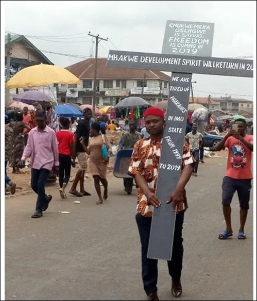 Home » photos » PHOTO: Man Protests With Huge Cross In Owerri, Imo State